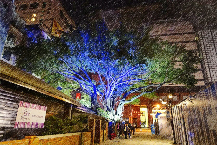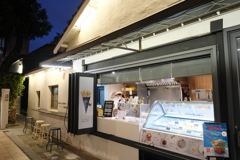 3D的藍晒圖,夜晚打了燈,光彩奪目的白色線條在藍色的牆面上四射出來,加上一旁打著黃色燈光的老樹,成了台南夜間的亮點。 園區分成三個部分,有旗艦區、微型文創工作室和園方自營區,目前共有27家各式店舖進駐,美食、文創、職人手作⋯都相當有特色。 斑駁的紅鐵門、拆卸下來的木板與窗框、早已廢棄的偉士牌,園區保留了許多老房子原有的元素,重新賦予新的生命, 光從外觀看就已經很讓人想進去逛逛。